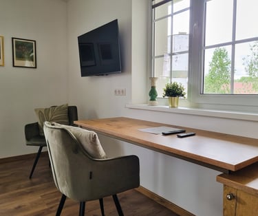 So much space! Very quiet, all the necessities one could want. There's a big balcony accessible from the room and also a big dining terrace accessible from the kitchen/dining area. Opportunity to prepare coffee. Very well stocked kitchen. Thank you!